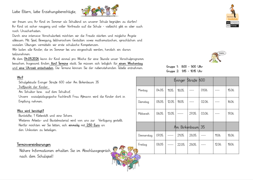 Wenn Sie Fragen haben, können Sie sich gern bei uns telefonisch unter 0231 50 20 800 oder per Mail: brechtener-grundschule@stadtdo.de melden.